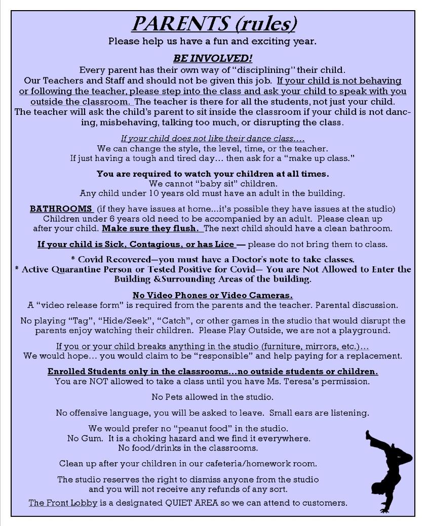 | We offer the following: Jazz, Pom, Tap, Ballet, Pointe, Lyrical, Hip Hop, Tumbling, Modern, Competition Auditions, Preschool Rhythm, Boy's Classes, Wedding , Private Lessons Ages 2 1/2 to Adult |